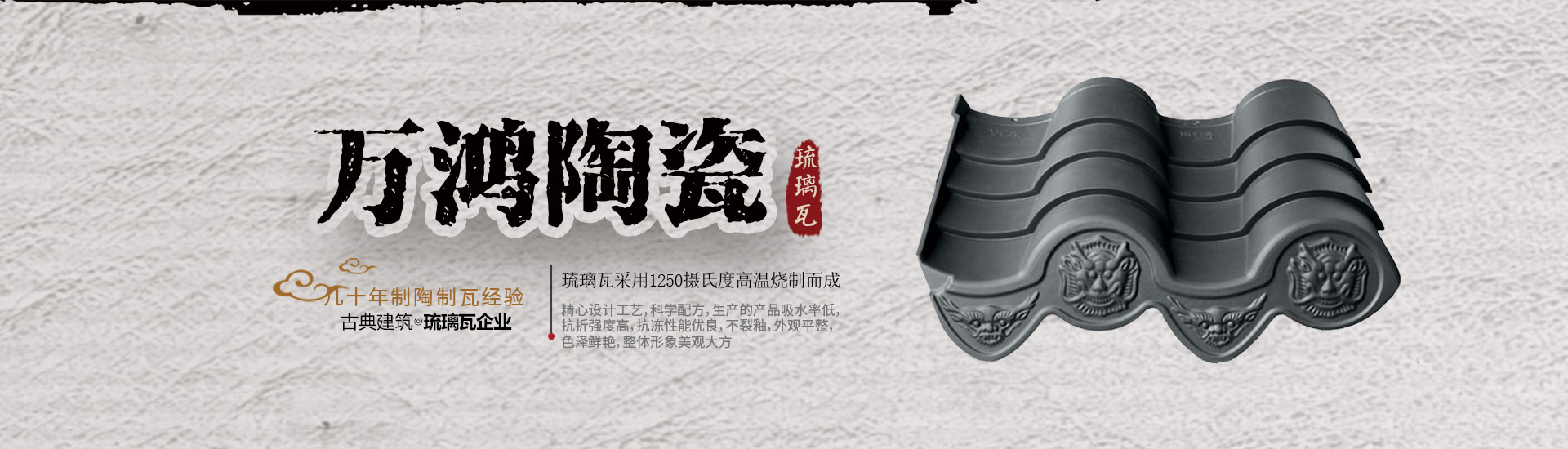 宜興市萬鴻陶瓷有限公司是國內(nèi)生產(chǎn)古建琉璃瓦企業(yè),也是宜興市琉璃瓦行業(yè)龍頭骨干企業(yè)。琉璃瓦采用1250攝氏度高溫?zé)贫桑咀浣?jīng)濟發(fā)達的宜興市丁山鎮(zhèn),臨近寧杭高速公路、新長鐵路、錫宜高速和104國道,交通十分便利。 萬鴻陶瓷擁有幾十...
